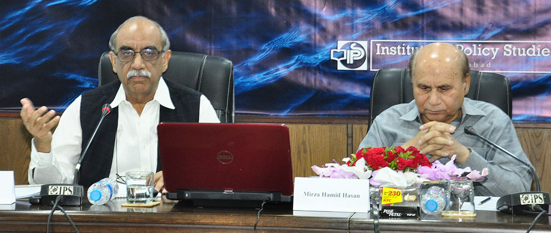He was addressing a roundtable session titled ‘Pakistan’s National Water Policy: An Appraisal’ held at IPS on May 11, 2018. The session was chaired by Mirza Hamid Hasan, former federal secretary and chairman, IPS’ committee on Energy, Water and Climate Change. The other main speakers among the discussants were Syed Akhter Ali, former Member Energy, Planning Commission of Pakistan, DG-IPS Khalid Rahman and Ambassador (r) Tajammul Altaf.