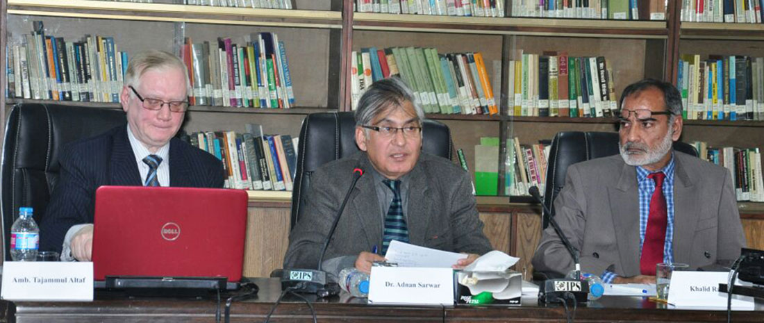 The session titled ‘Pakistan and its Neighbors: A Foreign Policy Analysis’ was held at IPS on February 8, 2018. It was chaired by Dr Adnan Sarwar, HoD, International Relations, National University of Modern Languages (NUML), Islamabad, and addressed by Ambassador (r) Tajammul Altaf and DG-IPS Khalid Rahman.