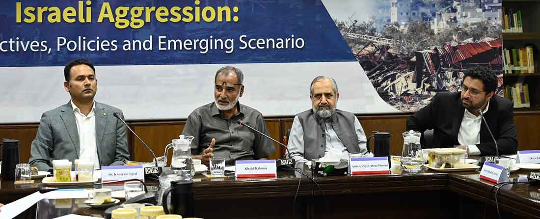 This was observed during a seminar on ‘Israeli Aggression: Perspectives, Policies, and Emerging Scenario’ held at IPS on October 18, 2024. The session featured distinguished panelists, including Syed Muhammad Ali, policy analyst and strategist, Oves Anwar, director, Research Society of International Law, Dr Khurram Iqbal, associate professor, National Defense University, Islamabad, Khalid Rahman, chairman IPS, and Ambassador (r) Syed Abrar Hussain, vice chairman, IPS.