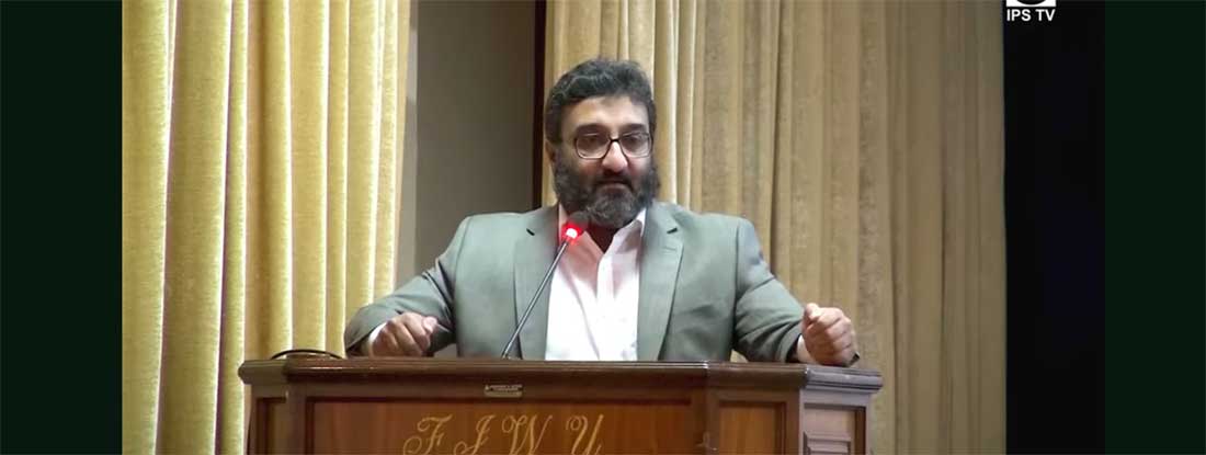 Prof Dr Aziz-ur-Rahman, director, School of Law, Quaid-i-Azam University, Islamabad speaking on the second day of the two-day international conference titled ‘The Constitution of Pakistan: Lessons for Next 50 Years’, co-organized by the Institute of Policy Studies (IPS), Islamabad, and the Department of Law, Fatima Jinnah Women University (FJWU), Rawalpindi on October 18-19, 2023.