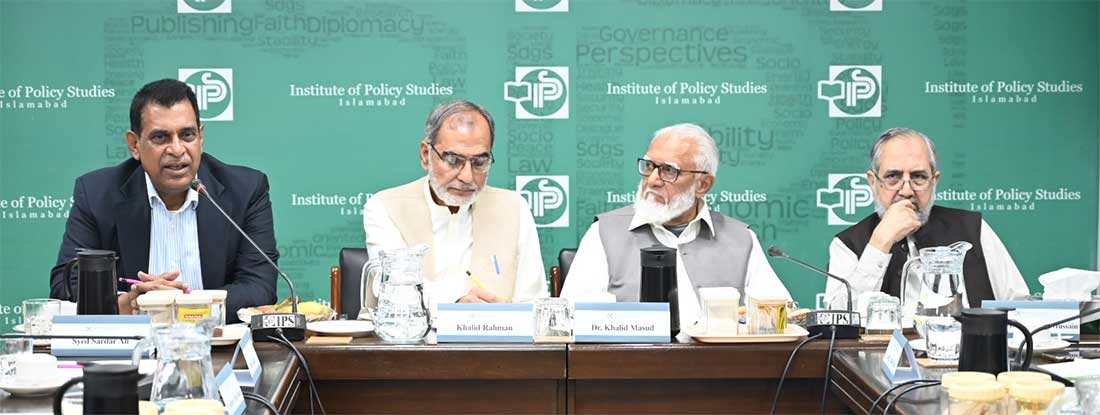 The participants in the discussion session included: Khalid Rahman, Chairman, Institute of Policy Studies; Amb. (R) Syed Abrar Hussain, Vice Chairman, Institute of Policy Studies; Dr. Khalid Masud, Member, Shariat Appellate Bench, Supreme Court of Pakistan; Engr. Arshad Dad, social worker and philanthropist; Sardar Khalid; Dr. Nasir Hafeez, SVI Institute; Nauman Akram; Advocate Imran Shafique; Dr. Waleed Rasool, Research Associate, Institute of Policy Studies; Dr. Nadeem Abbas, Al-Mustafa International University; Abdul Haseeb, CVRF; Advocate Muhammad Bin Sajid; Muhammad Asim, CEF; and Dr. Sohaib Zafar, CEF.