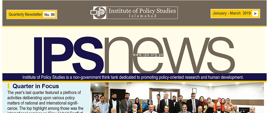 The January-March 2019 issue of IPS News – the quarterly newsletter of Institute of Policy Studies – is now online. It is published quarterly with an aim to disseminate IPS activities ranging from seminars, symposia, conferences, interaction, dialogues, roundtables on multi-dimensional topics and capacity-building programs. IPS News also informs its readers about latest publications of IPS.