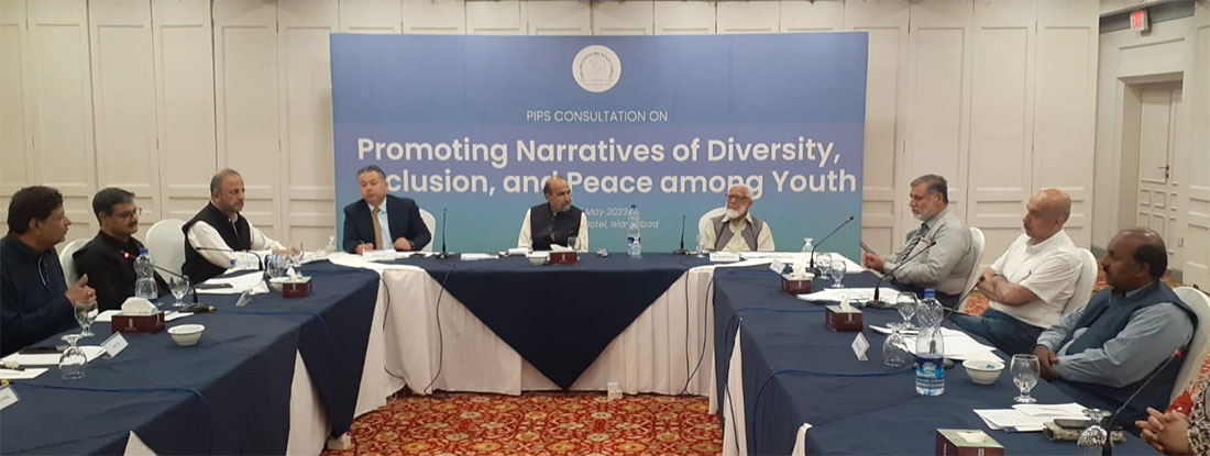 IPS’ Director Research and Academic Outreach Prof Dr Fakhrul Islam represented the Institute at the national consultation on ‘Promoting Narratives of Diversity, Inclusion, and Peace among Youth,’ arranged by Pakistan Institute for Peace Studies (PIPS) on 19 May 2023.